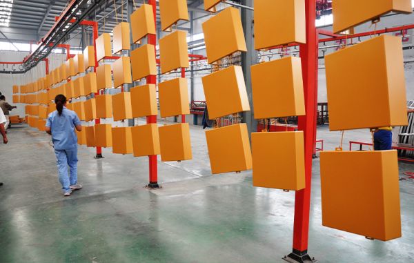 德國(guó)進(jìn)口的全長(zhǎng)250米的全自動(dòng)噴涂生產(chǎn)線,以及木紋轉(zhuǎn)印車間。